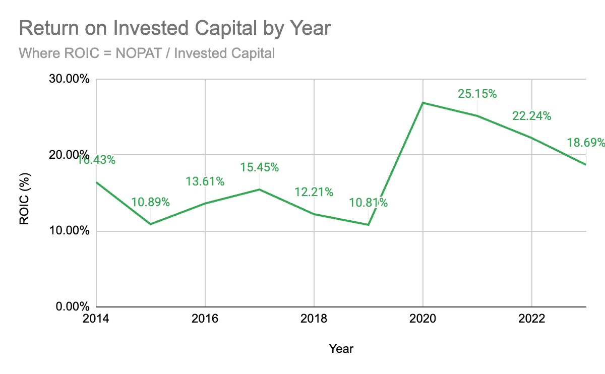 Return on invested capital has a positive correlation to occupancy rates. A higher figure indicates that the hospital can better spread out its fixed costs and have lower operating expenses as a percentage of revenue.